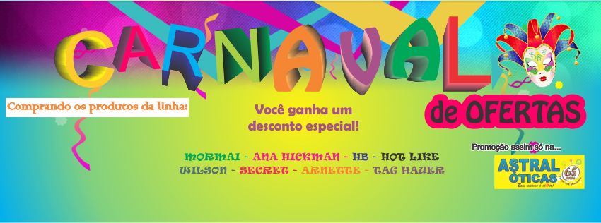 Promoção Carnaval de Ofertas Astral Óticas, a promoção é simples, é só comprar qualquer produto das linhas abaixo e irá ganhar um desconto especial.